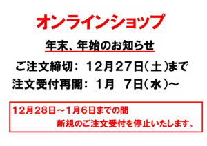 新年は、1月7日(水) 9時30分よりご注文の受け付けを再開いたします。